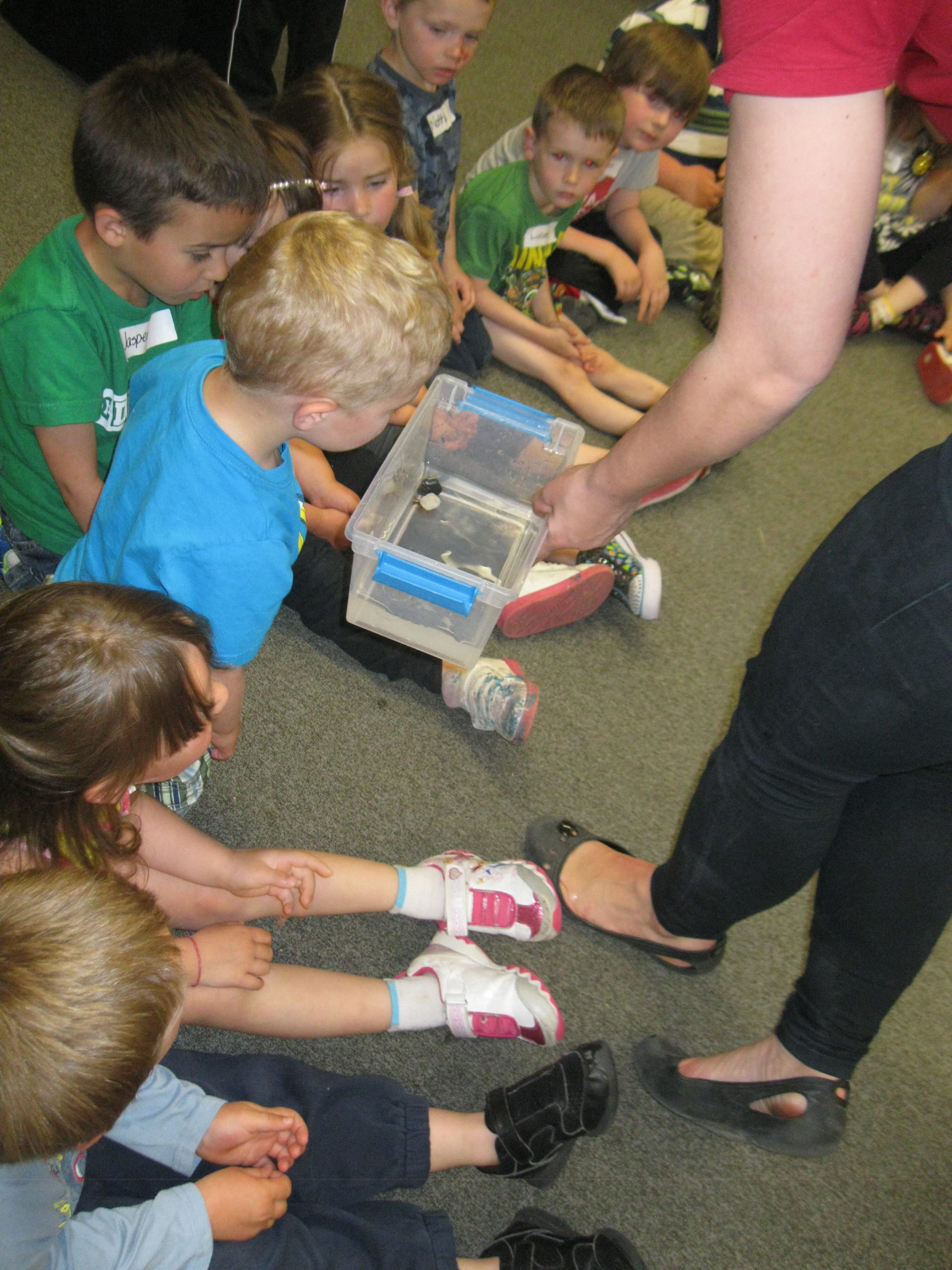 Earlier this week Robert Ogilvie Preschool had an opportunity to visit the Aqua Van ( the Vancouver Aquarium comes in and presents its wonders to the schools, through a traveling van). This being a great opportunity for the children to see some aquatic animals they might not have ever had the chance to see, we thought it would be awesome to invite Duncan Cran Preschool to join us on this adventure.