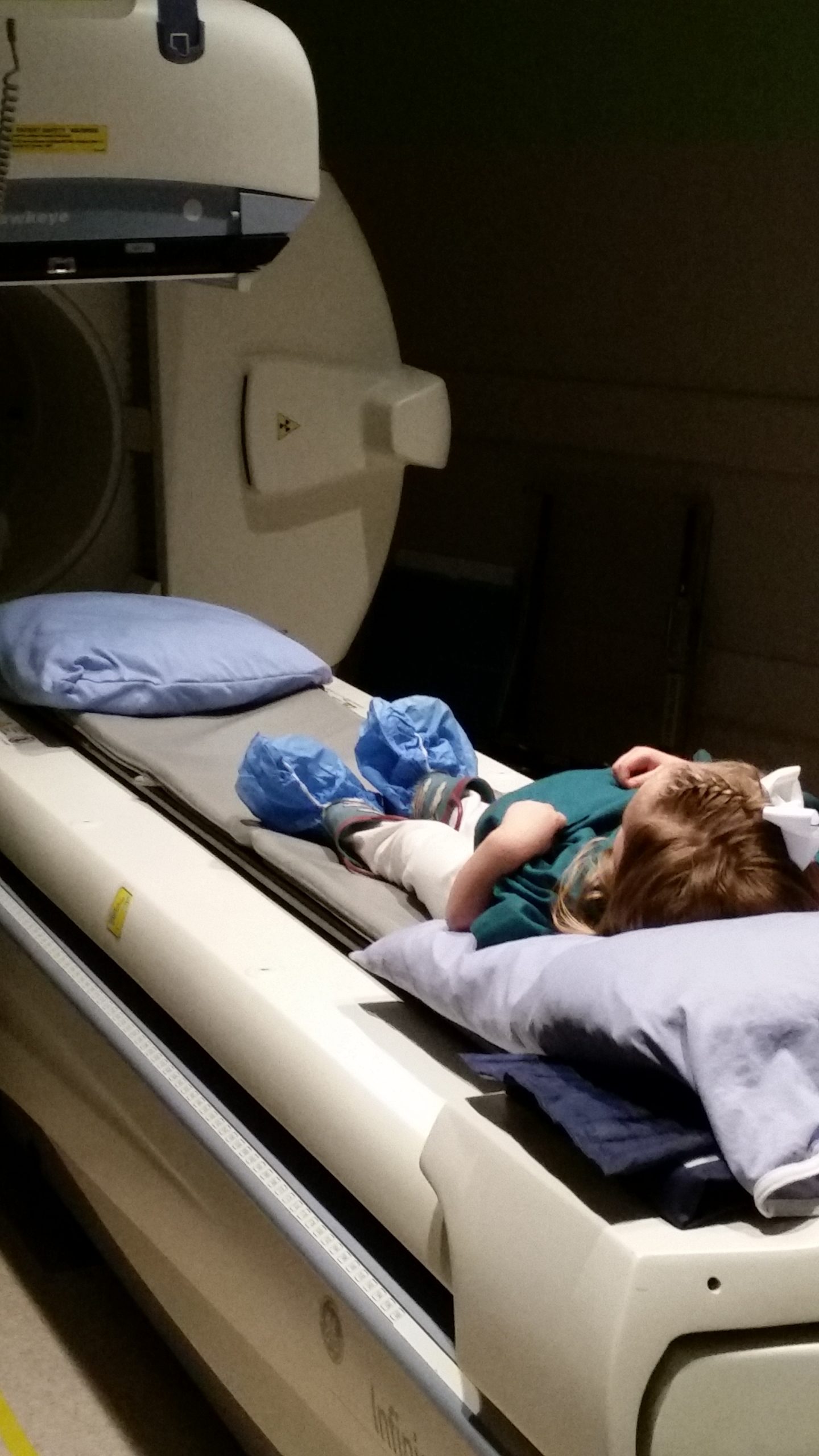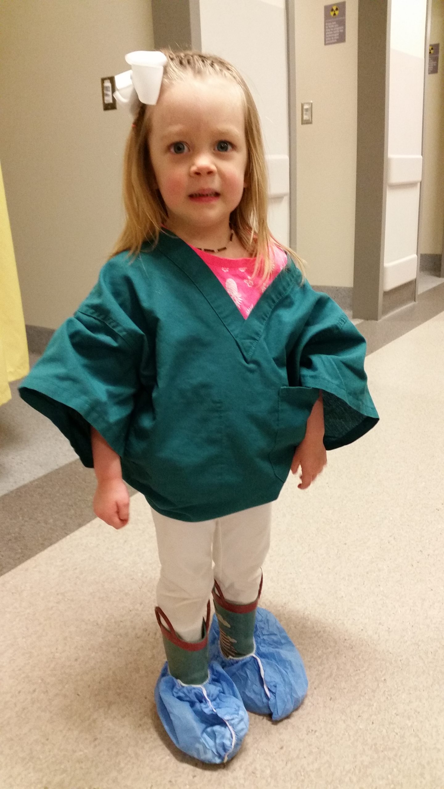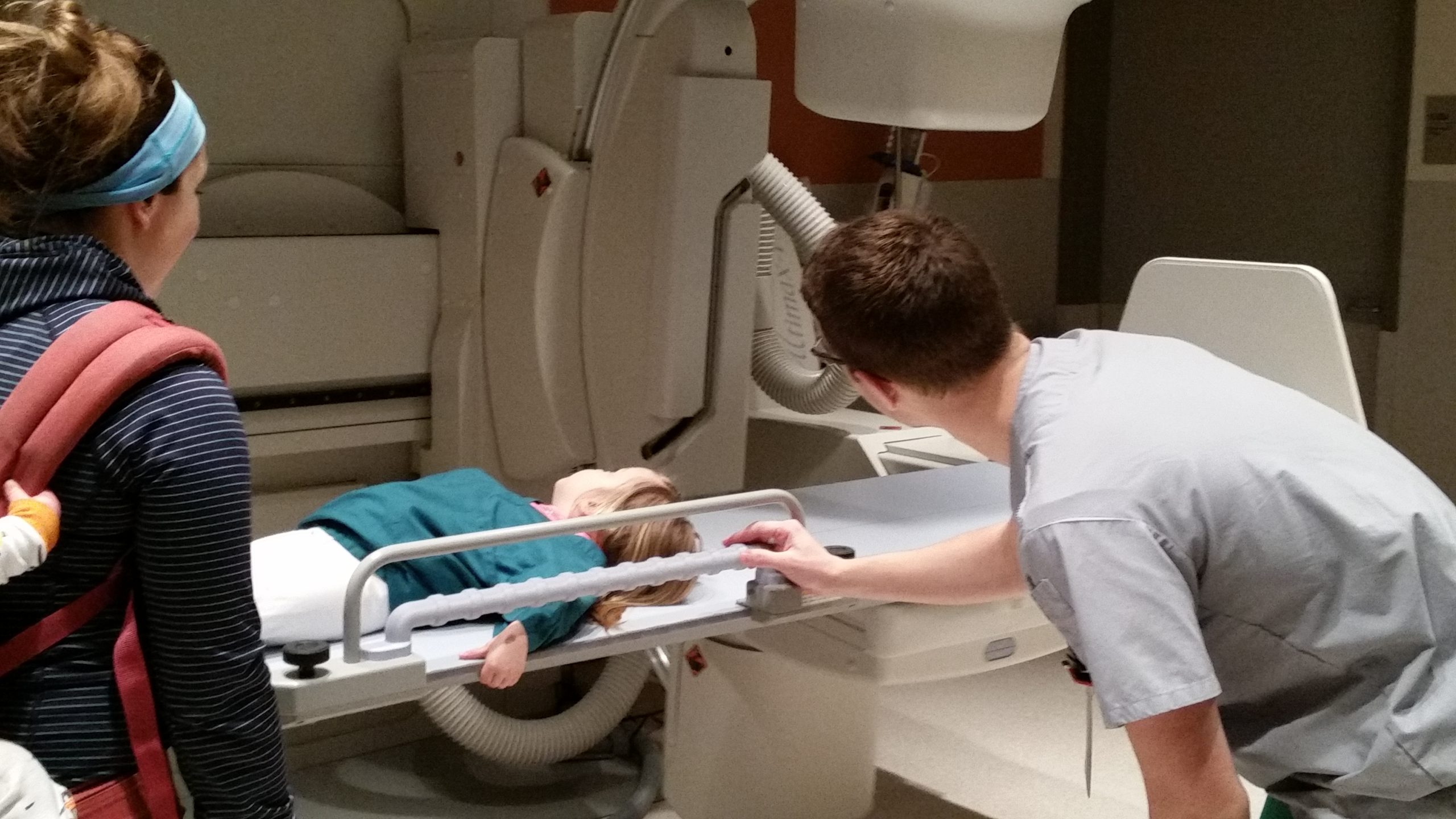 The children were excited to wear a “Dr/nurse” shirt for the tour.  One child also thought the provided booties over her boots was great!!  We toured the imaging department and got to see the equipment used as well as sit on and go for a ride on a couple of the “large camera” machines!